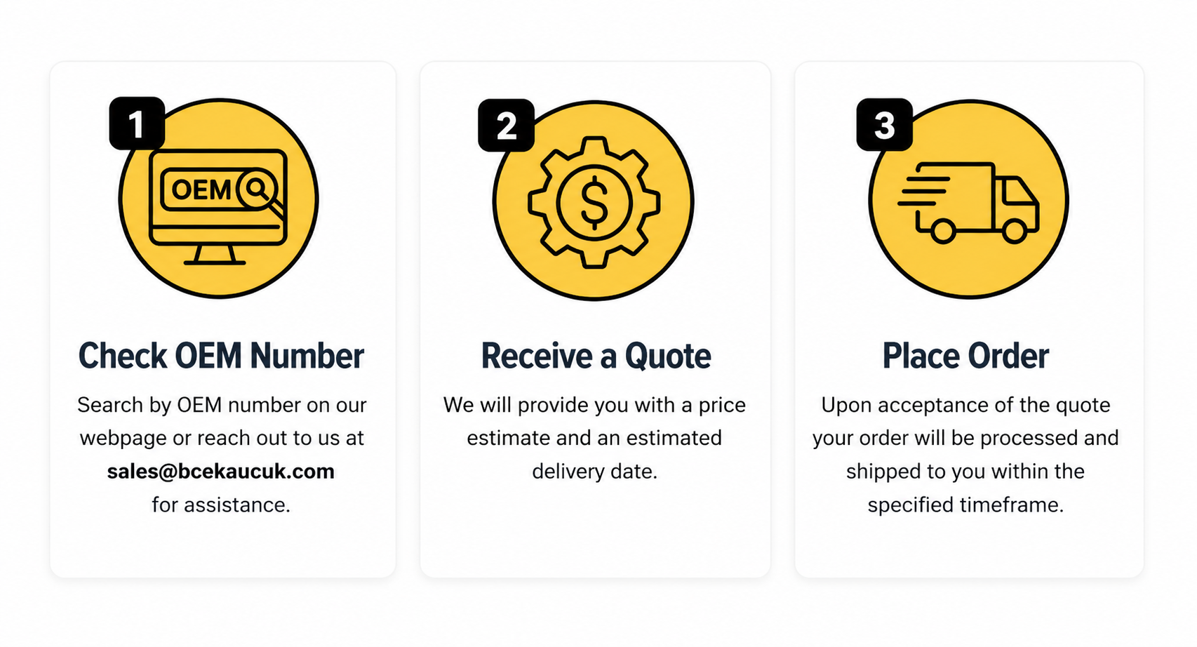 We deliver the best quality spare parts products to our customers with the most affordable prices and payment opportunities. As BCE Parts, we keep spare parts of many brands such as Volvo, Komatsu, Terex, and Caterpillar in stock with our experienced staff and technical team. For spare parts that you cannot find on our site, you can contact us via our contact form or our Live Support line. If you send us the product name or code along with its brand, we can deliver the spare part you are looking for as soon as possible.